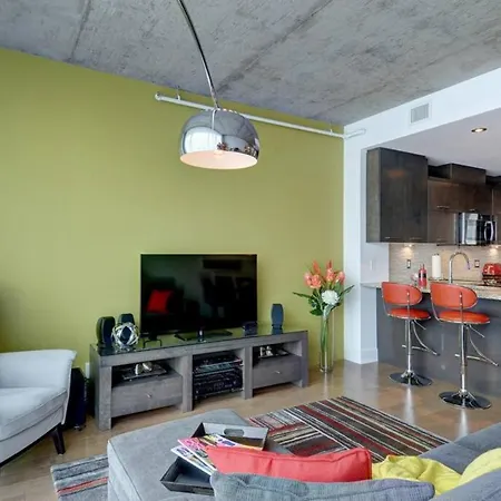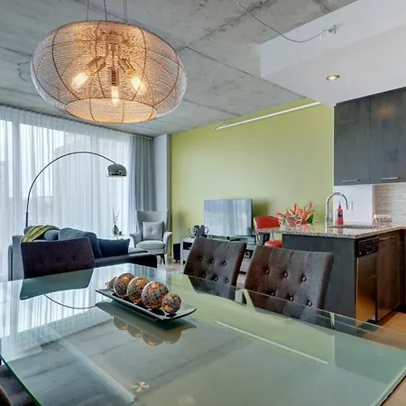 The 61 m^2 Les Immeubles Charlevoix - 760-510 Apartment is situated 6 minutes on foot from Quebec City Convention Centre and 15 km from Quebec/Jean Lesage International airport. Also, a variety of sports activities, such as fitness classes enable guests to uphold their workout outine.